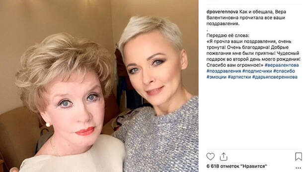 Ещё одна именинница, актриса Вера Алентова, неожиданно подверглась нападкам завсегдатаев соцсетей. Вере Валентиновне исполнилось 77 лет, и в честь этого её коллега Дарья Повереннова призвала подписчиков поздравить актрису. А к призыву приложила селфи вместе с Алентовой. Многие написали добрые слова, но некоторые бросились обсуждать внешность народной артистки. Звезду фильма "Москва слезам не верит" обвинили в чрезмерном увлечении пластическими операциями. Повереннова на подписчиков разозлилась. В следующем посте, где она передала благодарность Алентовой, возможности комментировать Дарья не дала, а потом строго отчитала злопыхателей.