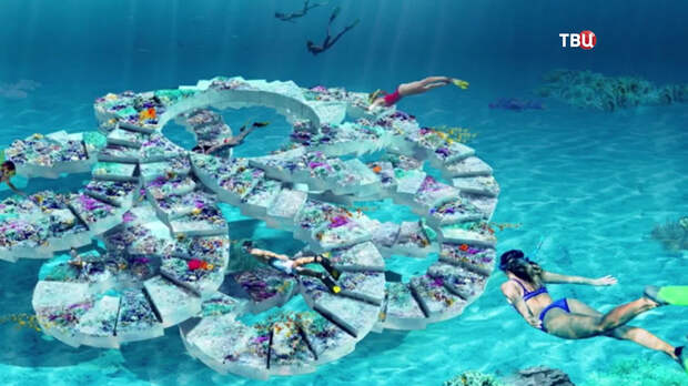 Ещё один архитектурный экопроект развернётся прямо под водой, недалеко от Майами. Коралловые рифы превратят в музей современного искусства. Художественными инсталляциями будут любоваться как посетители, так и обитатели морских глубин. Искусственный риф-музей растянется почти на 12 километров. Построят его из модульных бетонных блоков, не нарушая топографию морского дна. В разработке участвуют не только морские биологи, экологи и прибрежные инженеры, но и признанные деятели искусства. Каждый элемент подводного музея будет создан в гармонии с природой. Цель проекта − объединить развлекательную и познавательную функции, чтобы привлечь внимание людей к экологическим проблемам.