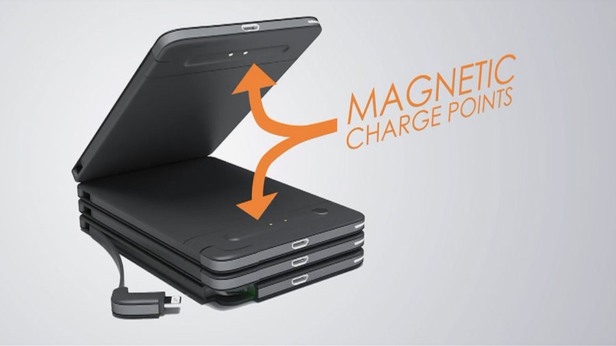 Представьте такую ситуацию: ваши гаджеты разрядились и их нужно восстановить. Чтобы не занимать все розетки в доме, придуман ещё один гаджет – портативное зарядное устройство, которое одновременно заряжает до восьми других устройств. Достаточно положить аккумуляторы друг на друга, и благодаря технологии магнитной зарядки они начнут накапливать энергию одновременно. Только один аккумулятор заряжается через разъём MicroUSB, являясь при этом базой для зарядки всех остальных.