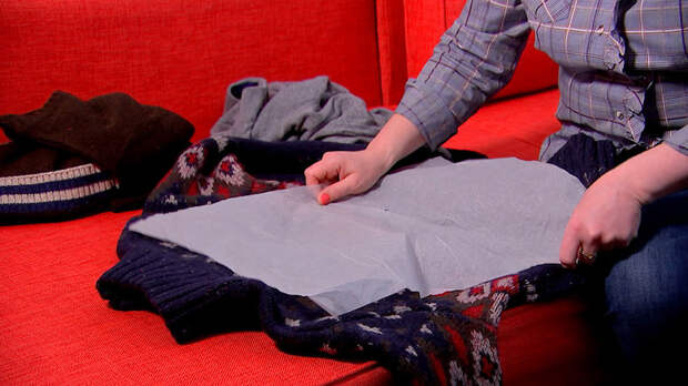 – Шерстяные свитера любят, когда их перекладывают пергаментом, чтобы лишняя влага не скапливалась в шерсти.