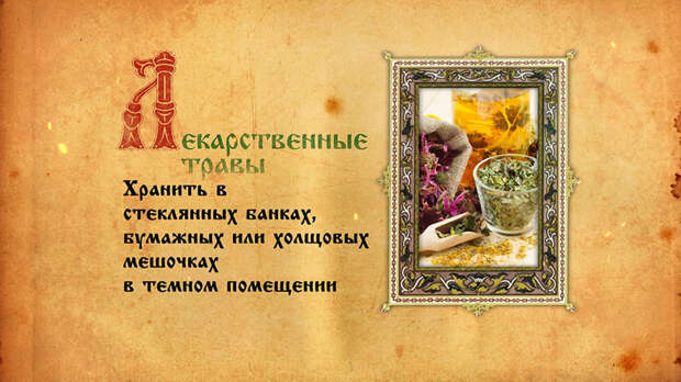 Высушенное сырьё хранят разложенным по стеклянным банкам, бумажным или холщовым мешочкам в тёмном помещении, при постоянной температуре и влажности. На каждой упаковке необходимо пометить название растения и год сбора. Лечебные свойства сырья сохраняются дольше, если оно хранится в целом, а не измельчённом виде.