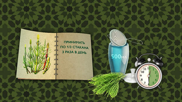 Для приготовления настоя две столовые ложки сухой травы хвоща залить 500 миллилитрами кипятка, настоять полчаса, затем процедить. Принимать одну треть стакана готового настоя три раза в день.