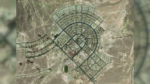 – Владелец горнодобывающей компании когда-то путешествовал по пустыне и его сын потерял игрушку в форме шлема, которая была его самой любимой. И владелец этой компании дал задание архитектору, чтобы тот построил город именно в виде шлема.