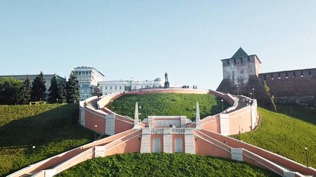 – Добро пожаловать в Нижний Новгород! Я нахожусь на Чкаловской лестнице, это моё любимое место в городе. Она начинается сверху, из центра города, с площади Минина и от памятника Валерию Чкалову и плавно спускается на Нижневолжскую набережную. Она считается одной из самых длинных прогулочных улиц в России.