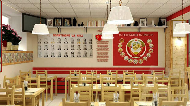 Он представлял собой юмористически приправленную реплику на советское министерство. К заведению отнеслись с восторгом – приятно было самому почувствовать роскошь, доступную в своё время лишь партийной элите.Тренд не стоит на месте и усложняется: слепо копировать интерьер и меню из прошлого уже не интересно. В декоре советское чаще выступает как элемент украшения, интегрированный в современность. А классику кухни подают не в пример наряднее, чем это было в СССР. Интерес к таким заведениям устойчив и только растёт. Немалую роль играет прочно закрепившаяся ассоциация, которая прекрасно работает также в брендировании продуктов: советское значит качественное.