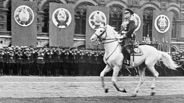 Коня Жукову подбирали долго – могучее телосложение маршала требовало достойного сложения и лошади. Наконец, нашёлся он – Кумир, конь бело-серебристой масти, которая символизировала победу. Красавца усиленно тренировали, приучали к громким звукам, кормили лучшими кормами, а перед парадом начистили практически до блеска.