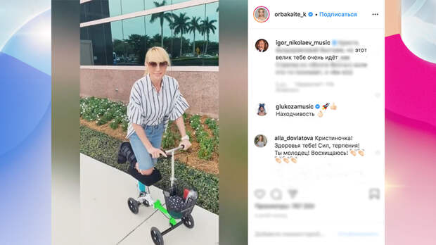 Кристина Орбакайте, которая несколько дней назад сломала лодыжку, пересела на самокат. Звезда продемонстрировала поклонникам транспортное средство, приспособленное под повреждённую ногу. Небольшое сиденье для пострадавшей части тела, четыре колеса и руль – похоже, от неожиданного решения проблемы певица в восторге: "Теперь передвигаюсь быстро и с позитивом". Подписчики оценили новый транспорта своей любимицы. Игорь Николаев написал: "Этот велик тебе очень идёт!" Глюк'оZa отметила находчивость певицы. Алла Довлатова заверила, что восхищается стойкостью Кристины: "Здоровья тебе, сил, терпения!