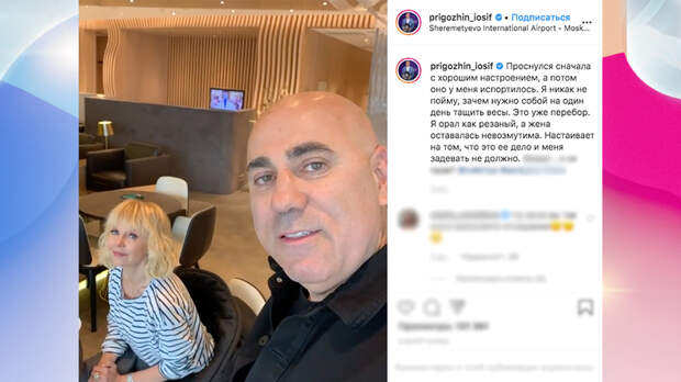Иосиф Пригожин пожаловался подписчикам на Валерию. Продюсер просит поклонников повлиять на жену. Оказывается, певица не выходит из дома без личных весов, чтобы иметь возможность отслеживать свой вес буквально каждый час. Возмущённый Пригожин пишет: "Проснулся сначала с хорошим настроением, а потом оно у меня испортилось. Я никак не пойму, зачем нужно с собой на один день тащить весы. Это уже перебор. Я орал как резаный, а жена оставалась невозмутима. Настаивает на том, что это её дело и меня задевать не должно". Мнения поклонников разделились. Кто-то, в том числе и Ирина Салтыкова, считает, что Пригожин действительно лезет не в своё дело и не в свою косметичку, а кто-то страдающего мужа звезды поддержал. Впрочем, большинство поклонников лишь умилились столь нежным семейным скандалом.