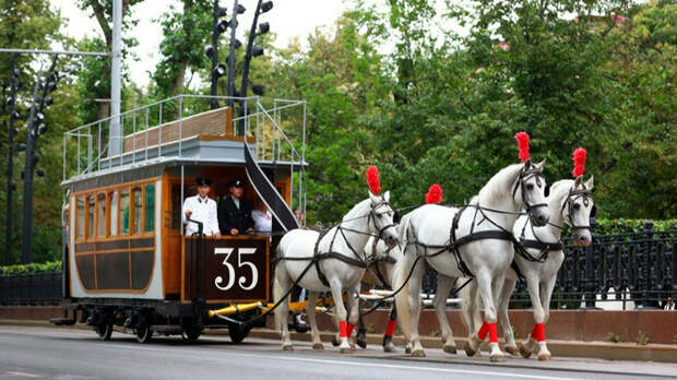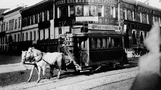 На смену линейкам пришли конки – вагоны, которые передвигались по путям за запряжёнными лошадьми.