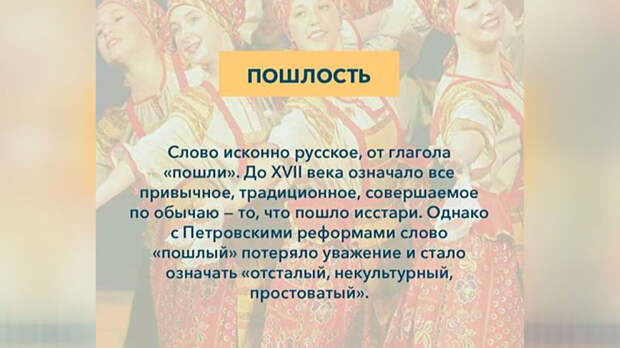 Рождение урода праздновали всей деревней, и каждый был этому искренне рад. Как до петровских реформ приходили в восторг и от всего пошлого. Ведь глагол "поити" в древнерусском языке значил "прийти исстари". Немного старомодный, а значит, достоин уважения.