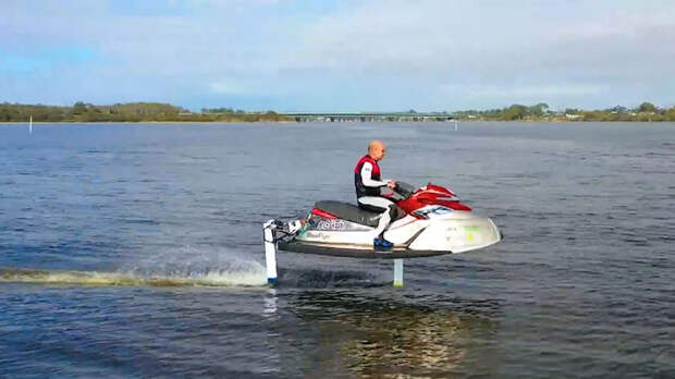 Гидроцикл на подводных крыльях. Пока скутер не наберёт достаточную скорость, никто и не заподозрит подвоха. Но при разгоне он поднимется над поверхностью воды. Отсутствие сопротивления позволяет машине разогнаться ещё быстрее и буквально лететь над волнами. При этом экономить заряд аккумулятора. На борту помещаются два пассажира, катать которых гидроцикл сможет полчаса.