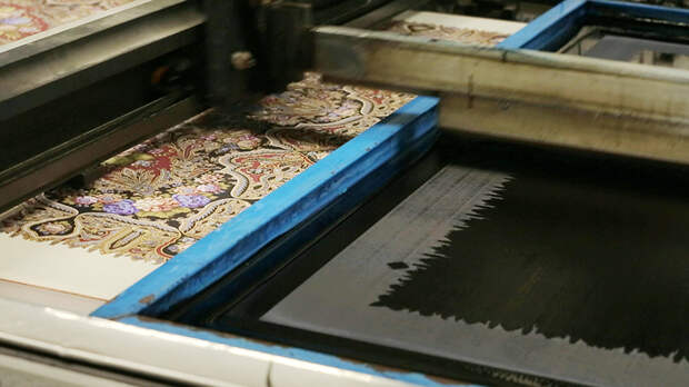 – Сейчас рисунок наносится на ткань с помощью не деревянных форм, а сетчатых шаблонов. Шаблонов ровно столько, сколько цветов. Максимально – 24, а может быть и 10.