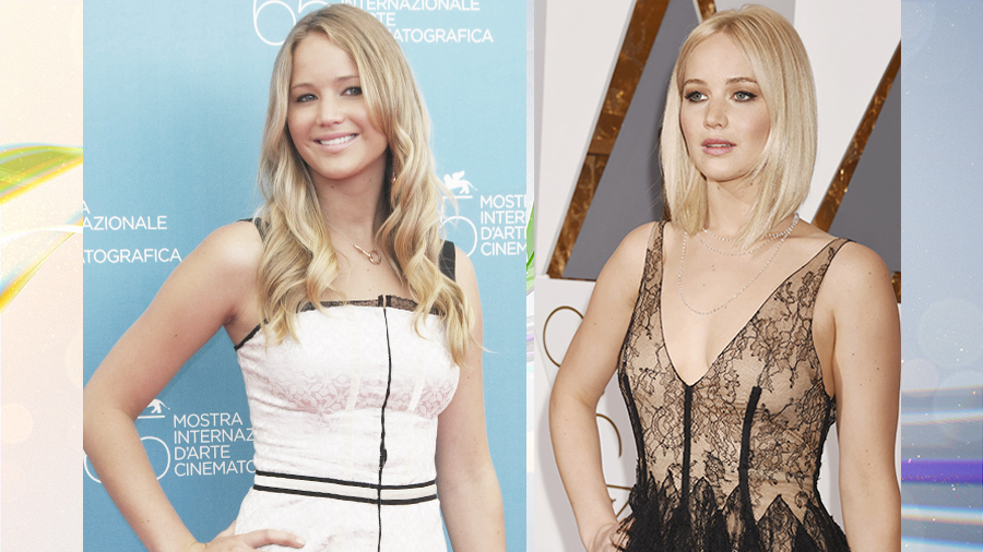 Волосы у неё тогда были длинные и русые. Но настал момент расставания, и Дженнифер превратилась в яркую блондинку с небрежным каре. Поклонники были в восторге! Наверное, Николас тоже, потому что после этого влюблённые опять стали встречаться. В честь воссоединения Лоуренс решила и от каре избавиться – ажиотаж вокруг нового имиджа был огромный. Но с Холтом в итоге всё равно не сложилось, и актриса стала возвращаться к каре, правда с новым, платиновым оттенком. На данный момент этот образ поклонники однозначно признали лучшим.