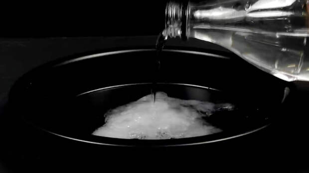 В результате кипячения вода и углекислый газ испаряются, а ацетат натрия, температура плавления которого составляет +58 градусов, становится жидким. Охлаждаем смесь до комнатной температуры и, самое главное, добавляем щепотку соли.