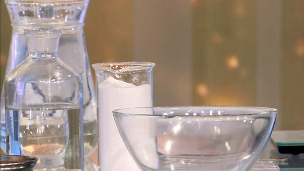 – Имея уксусную кислоту и соду, мы сможем воспроизвести данный опыт и при идеальных условиях получить горячий лёд. У нас образуется изотермическая реакция и выделяется углекислый газ. Когда смесь перестаёт пузыриться, нам надо выпарить всю жидкость и получить кристаллы ацетата натрия.