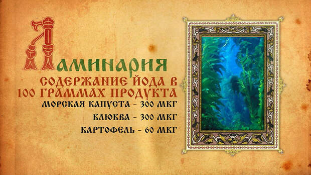 В странах Юго-Восточной Азии врачи утверждают, что даже здоровые люди старше 40 лет должны регулярно употреблять морскую капусту. Также к богатым йодом продуктам относятся: клюква, картофель, гречка, фасоль и чернослив.