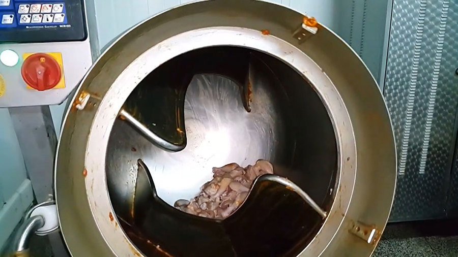 На какие только хитрости не идут продавцы, чтобы выдать неликвидное мясо за премиум-продукт! Например, крутят его в барабане, как бельё в стиральной машине. Несколько оборотов в огромной центрифуге, и свинина становится заметно мягче. А чтобы выручить побольше денег, мясо как следует обкалывают водой с полисахаридами.