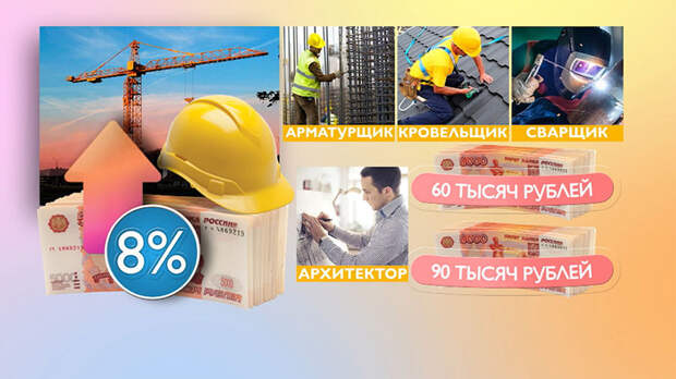 Достижения есть и в строительной отрасли. Пожалуй, это пока единственная область, где растут зарплаты. На 8% в год. Например, у архитекторов средний ежемесячный доход сегодня составляет 90 тысяч рублей, а у арматурщиков, кровельщиков и сварщиков – 60 тысяч. Вместе с зарплатами из-за большого количества строительных проектов растёт и спрос на рабочие руки. Но за место приходится побороться. На одну вакансию электрика претендуют 3 человека, а в Москве, где конкуренция самая высокая, – 6 человек. На должность прораба и штукатура приходится по 2 резюме.