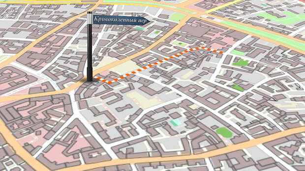 – Всё дело в его причудливой форме. К тому же он несколько раз изгибается практически под прямым углом. Кривоколенный переулок он со временем изменил свою траекторию, он стал длиннее и заворачивает ещё раз в сторону Архангельского переулка.