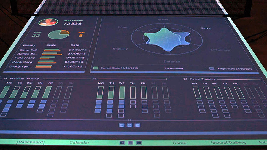 Новые технологии добрались и до классического пинг-понга. Над обычным теннисным столом вешаются две камеры и проектор – и у вас дома или в офисе появляется полноценный спортивный тренажёр, находящийся на пике технического прогресса. Устройство умеет визуально подсвечивать траектории полёта шарика, подсчитывать очки, вести статистику и давать уроки. Жаль только, что "умный" теннисный стол всё ещё не в состоянии поддержать беседу о гегемонии китайских теннисистов в мире пинг-понга…
