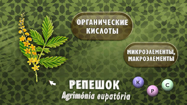 Репешок лекарственный, Agrimonia eupatoria, называют также репяшком, репейником обыкновенным, земляничником, так как он часто растёт рядом с земляникой и даже сороканедужником, поскольку считается, что он помогает при 40 болезнях.