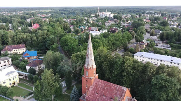 В городе Печоры есть и евангелическо-лютеранская церковь Святого Петра. Дело всё в том, что в 1926 году, когда строилось это здание, Печоры входили в состав другого государства – Эстонии.