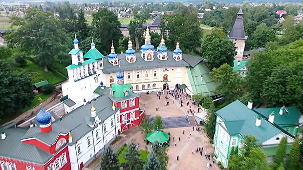 На территории монастыря здания разных стилей и эпох, но при этом никакого диссонанса. Очень гармоничная атмосфера, здесь приятно находится. Неудивительно, что именно Псково-Печорский монастырь Андрей Тарковский и выбрал для своего фильма "Андрей Рублёв".