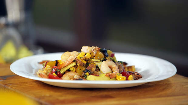Салат с креветками и кукурузой