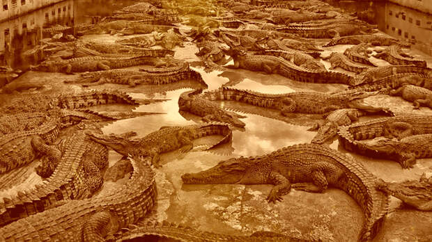 Есть версия, что происхождение выражения связано с древнегреческим театром. Вроде бы театр был устроен таким образом, чтобы посередине сцены был прорыт ров и там жили крокодилы. На одной части сцены показывали трагедии, где участвовали рабы, которых заставляли сражаться то ли друг с другом, то ли с дикими животными. После трагедии останки несчастных кидали в ров крокодилам, и те, доедая жертв, испытывали к ним жалось и плакали. А в это время на второй части сцены якобы шла комедия, поэтому и возникла фраза, связанная с крокодильими слезами.