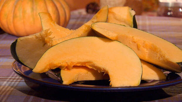 Разрезанную тыкву покупать не стоит. Исключение можно сделать только для той, которую поделили на кусочки у вас на глазах. Цвет мякоти хорошей тыквы – жёлтый или оранжевый. Чем ярче, тем больше в плоде содержится каротина. И тем она вкуснее и слаще. Крупные, белые семечки без пятен говорят о том, что вы выбрали хороший плод.