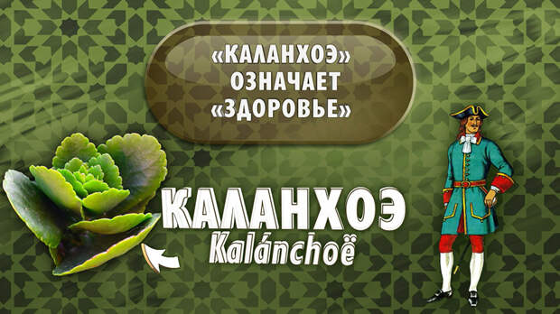Первые упоминания о каланхоэ встречаются в XVIII веке: легенды повествуют о чудесном исцелении от тропической лихорадки одного русского моряка с помощью листочков каланхоэ на острове близ берегов Южной Африки. Через месяц на борт корабля поднялся совершенно здоровый матрос. Ведь "каланхоэ" в переводе с языка туземцев означает "здоровье".