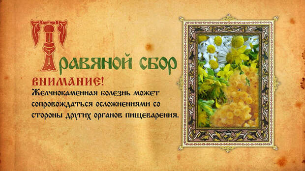 Для лечения желчнокаменной болезни рекомендуем следующий рецепт. В пол-литровый термос завариваем с вечера 2 столовых ложки сбора, в который входят: по 3 части бессмертника, чистотела, календулы и сосновых почек, по 4 части дымянки, листа рябины красной, корней аира, одуванчика, барбариса, марены и репешка, а также 1 часть корня стальника.