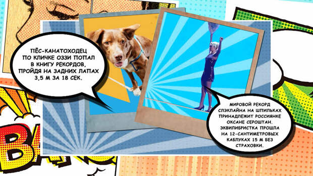Справка: Пёс-канатоходец по кличке Оззи попал в книгу рекордов, пройдя за задних лапах 3,5 м за 18 секунд. Мировой рекорд слэклайна на шпильках принадлежит россиянке Оксане Сероштан. Эквилибристка прошла на 12-сантиметровых каблуках 15 м без страховки.