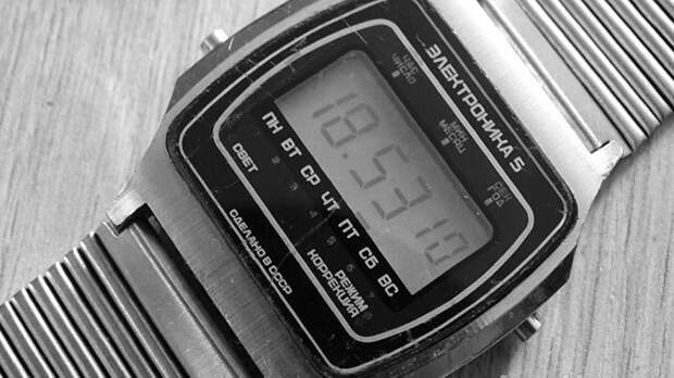 Электронные часы появились в СССР в 1970-х годах. Счастливчики, которые накопили 78 рублей, могли купить себе наручную "Электронику" и нажимать на кнопку, чтобы цифры загорелись, перед завистливо вздыхающими друзьями.