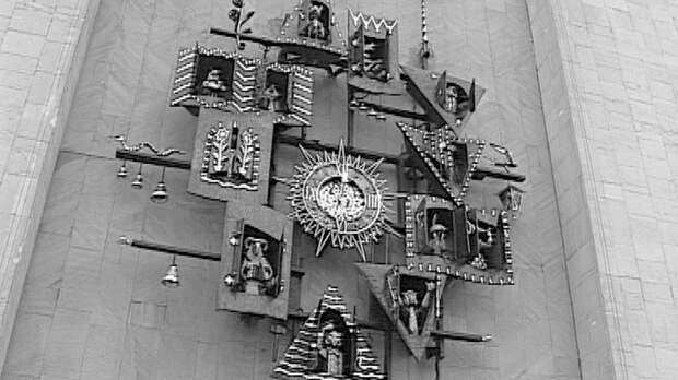 12 домиков с персонажами из любимых сказок – такие часы придумал для своего Театра кукол Сергей Образцов. Каждый открывался – да и открывается по сей день – в назначенный час.