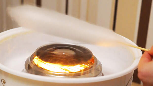 Но в разряд общедоступной сахарную вату перевёл именно американский стоматолог, создав механический способ изготовления. Во время вращения металлической центрифуги сахарный сироп просачивался сквозь мелкие отверстия и застывал прямо в воздухе. Длинные тонкие нити получались диаметром меньше миллиметра.