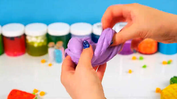 Удивительно, но тренд заключается именно в самостоятельном приготовлении слайма – пойти и просто купить его никому не интересно. Состав выглядит несложно: клей, загуститель и красители. Но материал нежный, и желаемый результат сразу получается далеко не у всех.