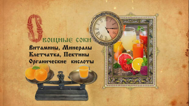 Соки содержат такие же витамины, минералы, клетчатку, пектины, органические кислоты и эфирные масла, как и сами плоды, но в большем количестве, поскольку 1 стакан напитка получается из нескольких плодов. Кроме того, соки усваиваются в организме за 10-15 минут, в то время как плоды могут перевариваться от 2-х до 5-ти часов.