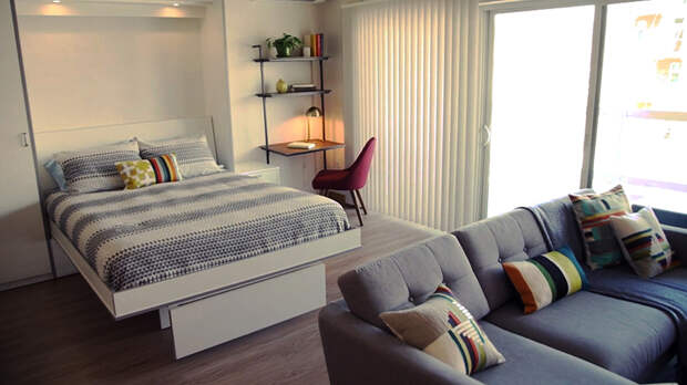 Специалисты уверены, что и небольшая площадь нуждается в периодическом обновлении. Декораторы советуют избавляться от мелких деталей и вместо них использовать более крупные, например, повесить большую картину. Таким образом визуально увеличивается пространство. А психологи обеими руками за декоративные подушки на диване – они создадут приятную атмосферу отдыха и приведут к эмоциональной разгрузке.