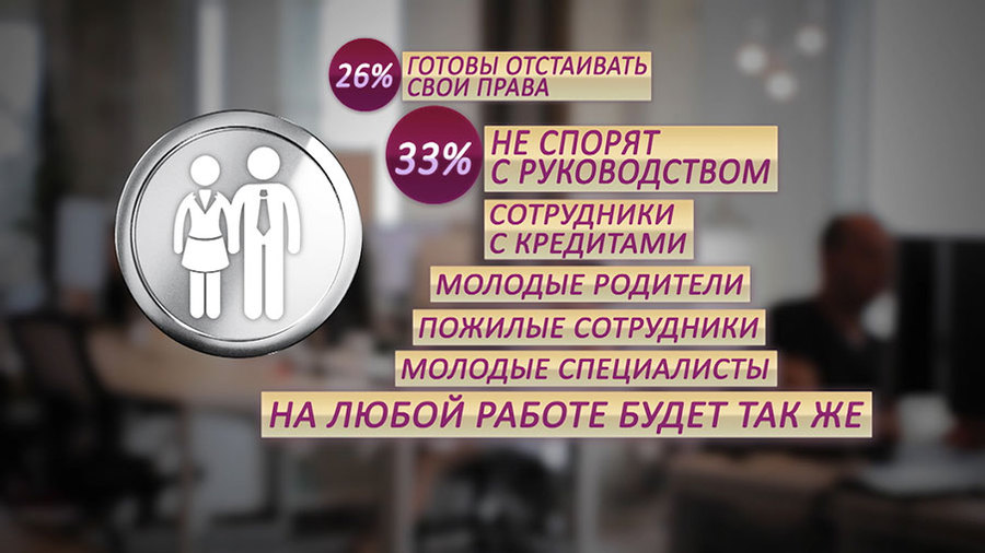 Треть российских работников предпочитает не спорить c руководством. Сотрудники избегают конфликтов с начальством из-за опасений быть уволенными. Как выяснили кадровики, только 26% россиян в случае чего пойдут в суд отстаивать свои права. Терпеть необоснованные требования начальства готовы работники, имеющие кредиты, молодые родители, люди предпенсионного возраста и специалисты с небольшим трудовым стажем. Не видят смысла спорить наши сограждане ещё и потому, что считают: на другой работе всё будет точно так же.
