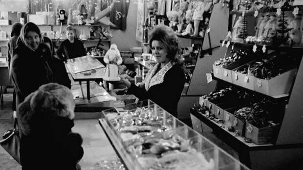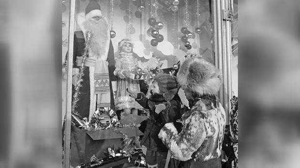 В советское время уже и магазины наряжали витрины, одна интереснее и сказочнее другой! Жители города тоже были вдохновлены зимним сезоном: расписывали окна квартир, а в рамы ставили ёлочные игрушки, особенно те, кто жил на первом этаже.