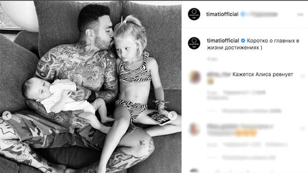 Сын Тимати ест из одной посуды с котами! Шокирующие кадры появились на страничке Анастасии Решетовой. Один из питомцев рэпера и его возлюбленной очень бодро пьёт из детской бутылочки. Кто-то даже предположил, что и молоко внутри грудное. Шквал возмущения обрушился на молодую маму, и той пришлось экстренно оправдываться: "У котов своя посуда и своё коровье молоко. Вы в своём уме вообще допускать иное?" Пока Анастасия объяснялась перед своими подписчиками, Тимати отбивался от своих. Совместное фото музыканта с сыном Ратмиром и дочерью Алисой навело фолловеров на мысль, что девочка ревнует отца к младшему брату. Дотошные фанаты усмотрели во взгляде девочки нелюбовь к малышу. Тимати, впрочем, заверил, что это совсем не так.