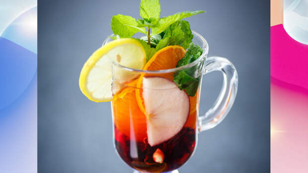 Свежезаваренный чай бережно переливаем в кастрюлю, добавляем туда смесь ароматных добавок – корица, апельсин, яблоки, сахарный сироп – и доводим до температуры 70 градусов. Затем очередь главного элемента – нам понадобится 40 грамм рома. Украшаем мятой. Не забудьте подготовить её к такому важному событию: перед сервировкой мяту надо немного побить.