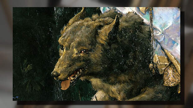 У Серого Волка глаза особенные − человеческие. Перед нами оборотень, однако в его облике нет ничего пугающего или кровожадного. Образ зверя полон преданности, отваги, самопожертвования. Диагональное расположение мчащейся группы на полотне передаёт ощущение стремительного бега.