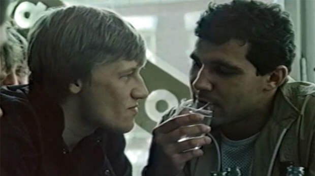 – К нему в номер зашёл человек и поинтересовался: "Вы кино снимаете? Хотите, я у вас стакан съем в кадре?". Затем он взял в руки стакан и начал есть его прямо на глазах у Рыбарева. Так родилась новая сцена.