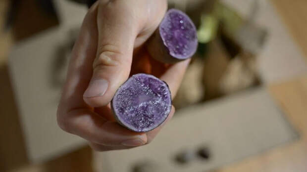 Окрас от розового до синего плод может получить, только если в его клетках есть особые вещества – антоцианы. Именно благодаря антоцианам ещё в прошлом веке селекционеры вывели фиолетовую картошку.
