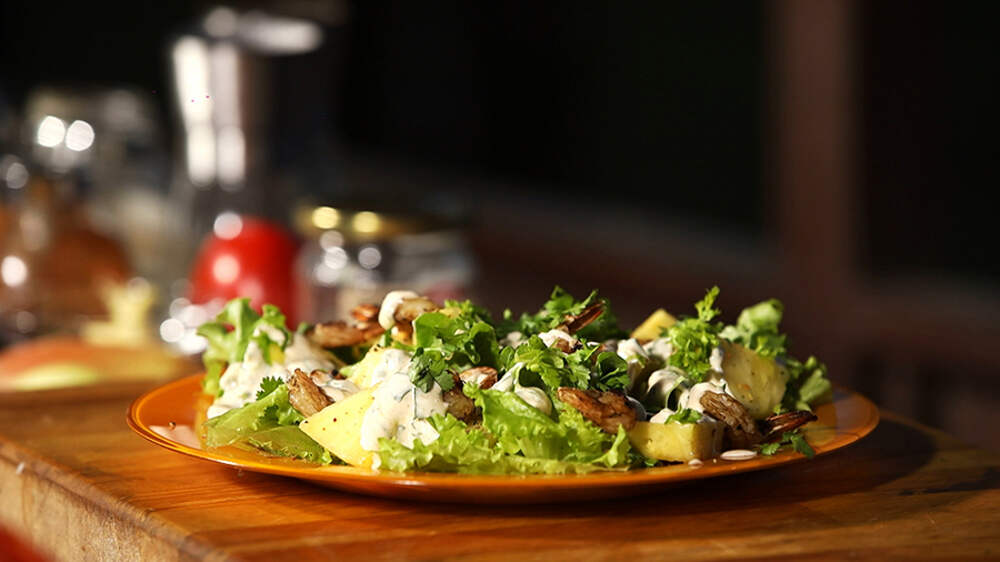Салат с креветками и ананасом